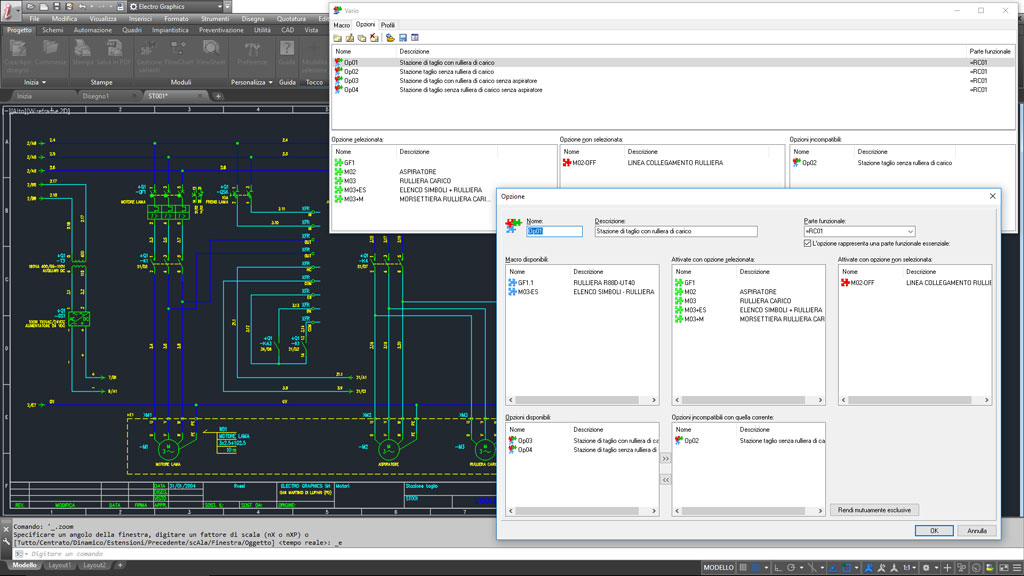 O exclusivo módulo Vario, desenvolvido para o gerenciamento das variantes dos desenhos esquemáticos, é essencial sobretudo na produção de máquinas em série com o uso de peças ou acessórios, cujo a presença pode ser determinada de acordo com relações booleanas ou de exclusão mútua. Interfaces Vario com CAD’s elétricos Electro Graphics (linha CADelet, linha Smart, iDEA).